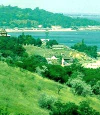 Today Odessa is a city of 1.1 million people. The city's industries include ship building, oil refining, chemicals, metal working and food processing. Odessa is also the home of a Ukrainian naval base and fishing fleets. Odessa is situated on terraced hills overlooking a small harbor. The weather in Odessa is mild and dry with average temperatures in January of -2 C (29 F), and July of 22 C (73 F). Odessa averages only 35 cm (14 in) of precipitation annually. Odessa has many therapeutic resorts. The primary language spoken in Odessa is Russian. Ukrainian, however, is the official language and many advertisements and signs are written in it. The city is a diversity of people including Ukrainian, Russian, Moldavian, Greek, Romanian, Bulgarian, Caucasian, Jewish, Turkish, Vietnamese and so forth. Modern Odessa is a city rebuilding herself, and her downtown is slowly being revitalized. Odessa is well-known as the capital of humor, probably due to the great variety of people and her southern location on the Black Sea. Today, Odessa is referred to as the "Pearl of the Black Sea", "Odessa Mama" and "Southern Palmira" by many.